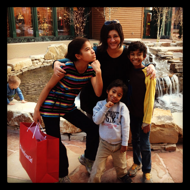 She tried to be patient, since we weren't sure when we'd be able to drive to the store in Denver. With a busy week ahead, we decided to make Day Two of the 25 Days of Christmas a Surprise Shopping Day. I was inspired by "Elf" and asked the kids to keep going around and around in the revolving door - silly fun!