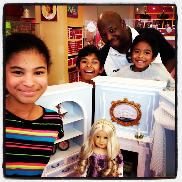 The guys were such awesome troopers for hanging out in the store while Mireille tried to decide what outfit or accessory she wanted to get for her doll, Caroline. Thank God that the store in Denver is a lot smaller and less crowded than the one in NYC. We visited it twice last year, and it was always packed!